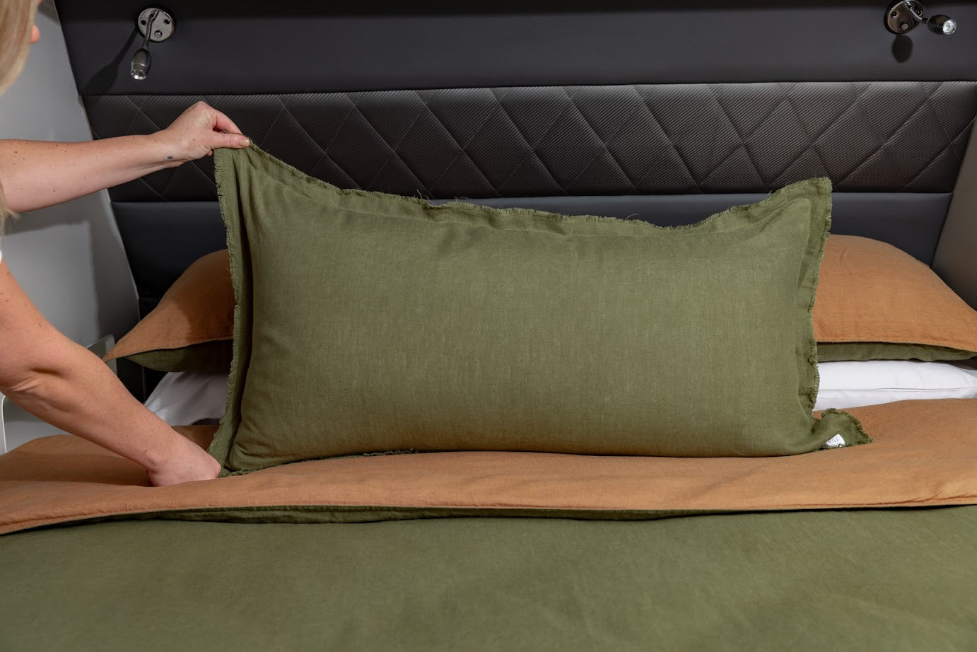 Designed in a colour palette derived straight from nature, each colour complements our quilt covers and pillowcases, allowing you to seamlessly mix and match. Each cushion is stonewashed and finished with an eyelash fringe detailing, adding a luxurious touch to your caravan interior.